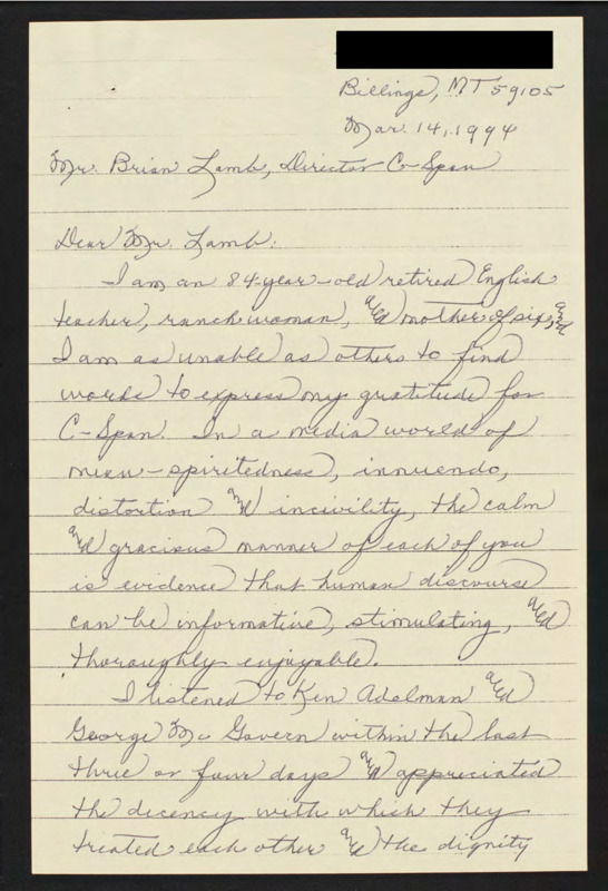 Letter to C-SPAN, 1994-03-14; 59105
