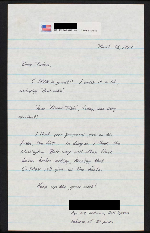 Praises Booknotes and the Journalists' Roundtable because it delivers the facts; says this should make the Washington Belt-way think twice.