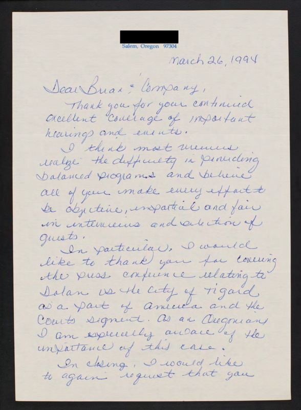 Letter to C-SPAN, 1994-03-26; 97304