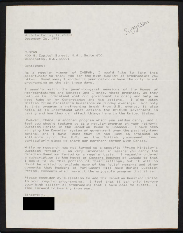 Explains how they enjoy "Question Time" in the British House of Commons and suggests televising a similar program for the Canadian House of Commons.