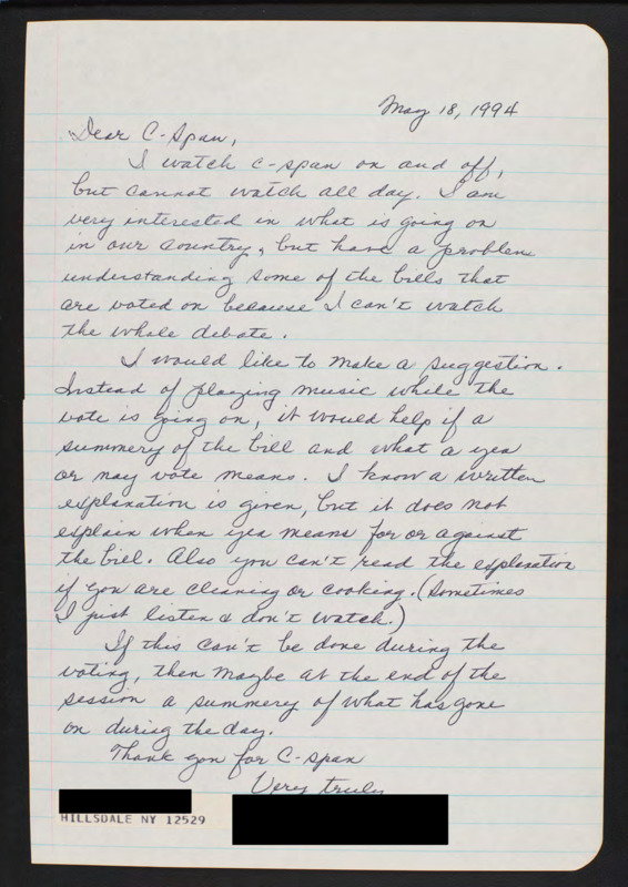 Suggests replacing the music during Congressional voting periods with summaries of the bills.