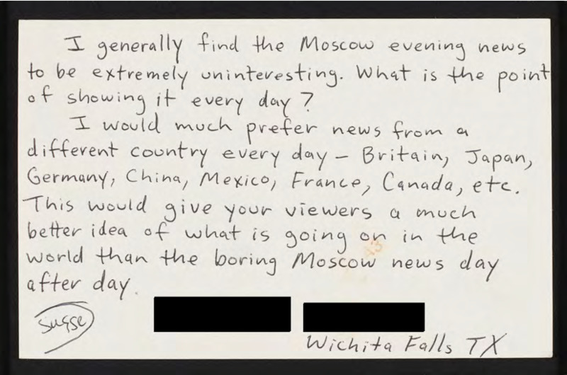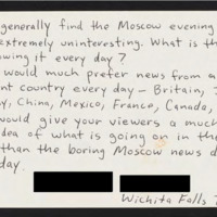 Finds the Moscow Evening News uninteresting and boring and would prefer news from other countries.