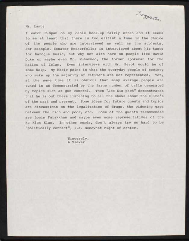 Claims the show is not including everyday citizens like David Duke and the former spokesmen for the Nation of Islam. Recommends inviting Louis Farrakhan and Ku Klux Klan representatives.