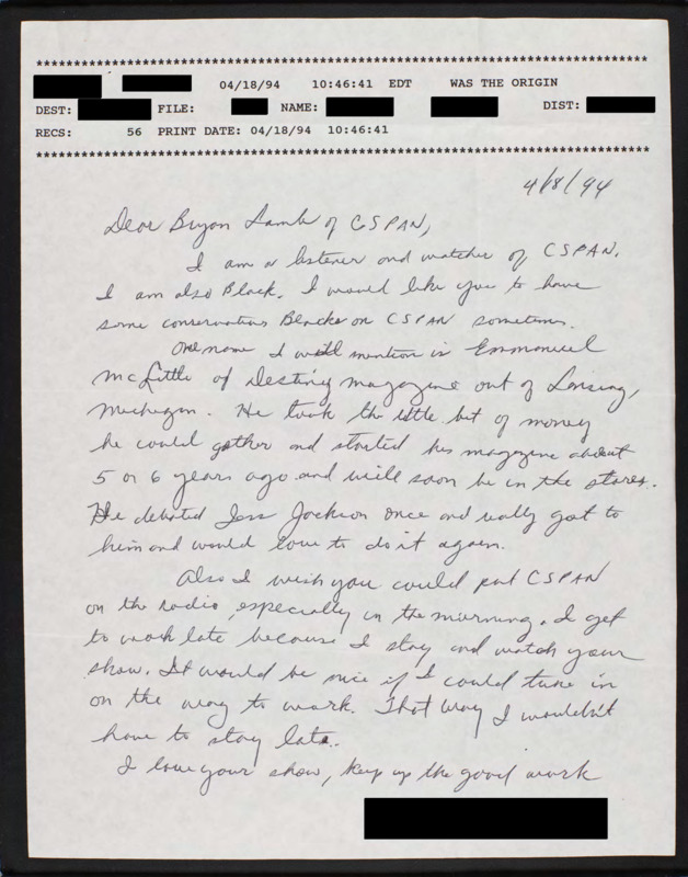 Letter to C-SPAN, 1994-04-18; 66212