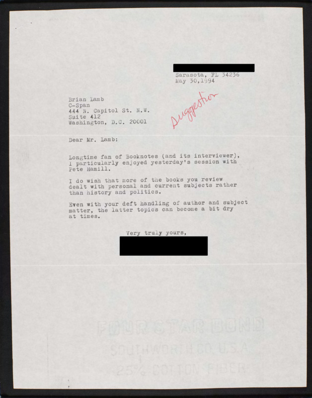 Letter to C-SPAN, 1994-05-30; 34236