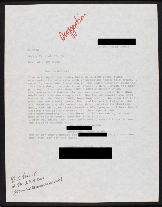 Letter to C-SPAN, n.d.; 04039