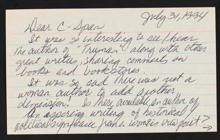 Letter to C-SPAN, 1994-07-31; 56007