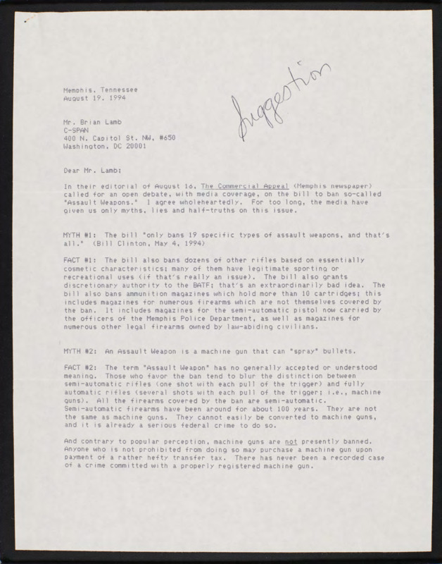 Says the media has only shared myths concerning a proposed assault weapons ban. Counters multiple beliefs concerning gun control.