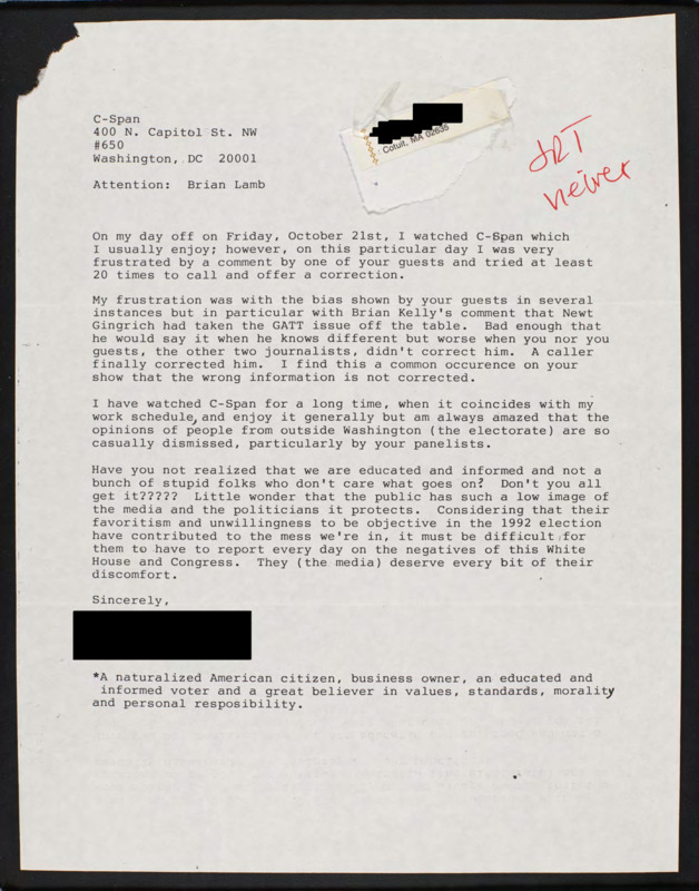 Letter to C-SPAN, n.d.; 02635