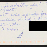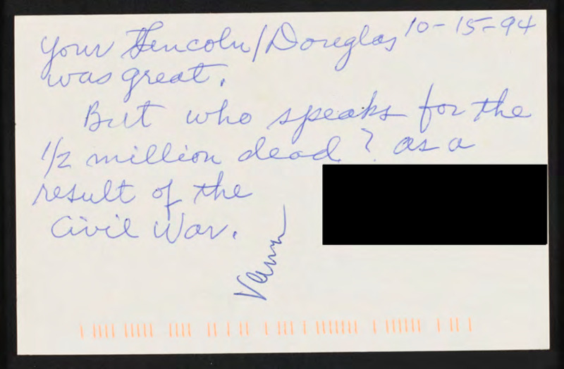 Says the Lincoln/Douglas debates was great but asks about the death toll of the Civil War.