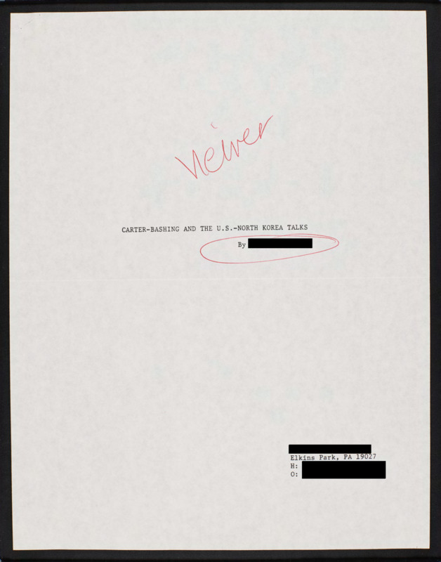 A title page that says Carter-Bashing and the U.S. North Korea Talks.