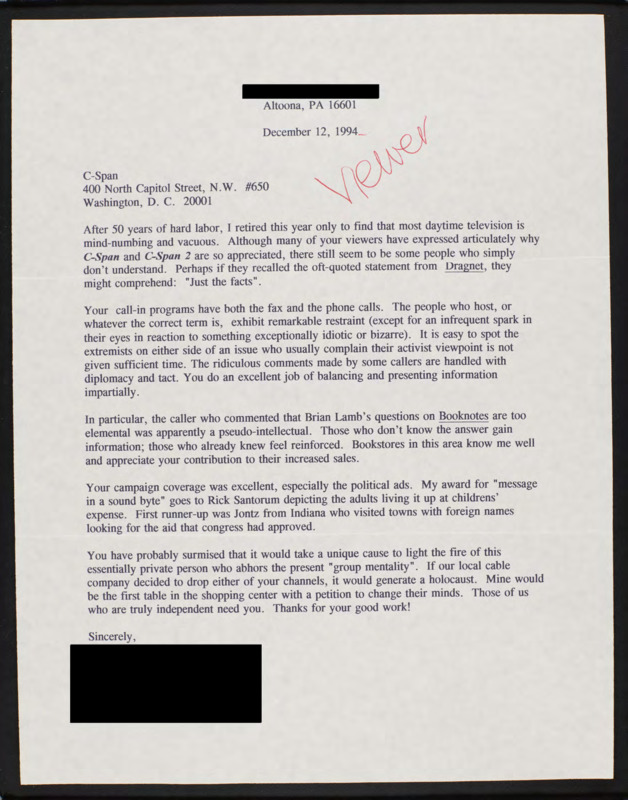 Praises call-in moderators for being tactful with callers, praises Booknotes, and praises the campaign coverage.