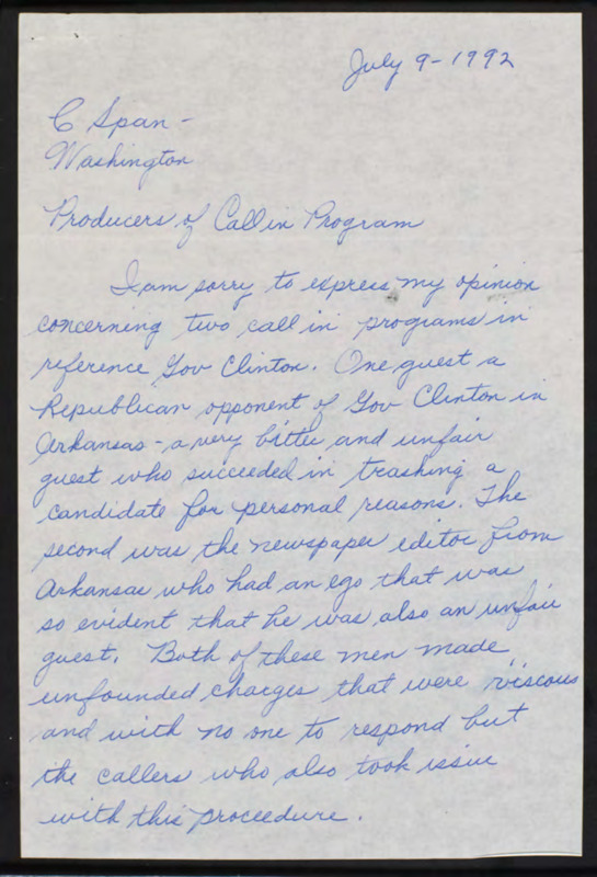 Letter to C-SPAN, 1992-07-09; 44710