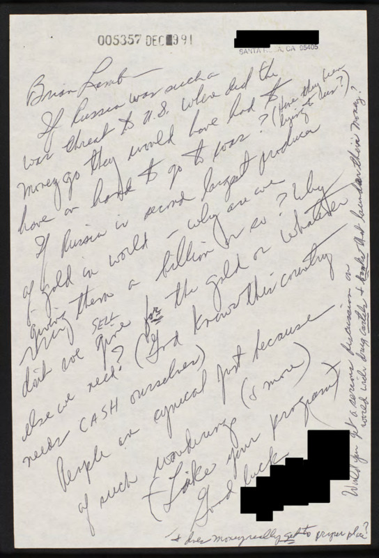 Letter to C-SPAN, 1991-12-02; 95405