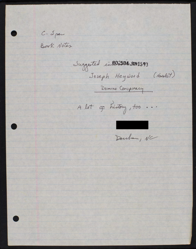 Letter to C-SPAN, n.d.