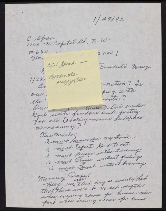 Letter to C-SPAN, 1992-01-29