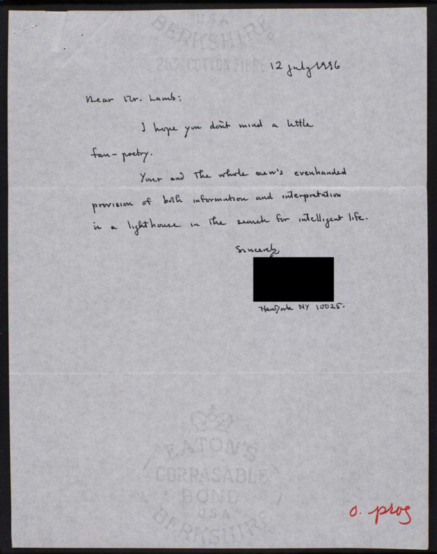 Letter to C-SPAN, 1996-07-12; 10025