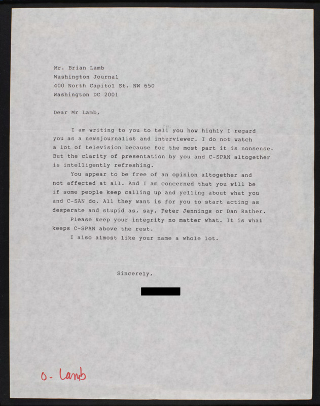 - Letter to C-SPAN, n.d.