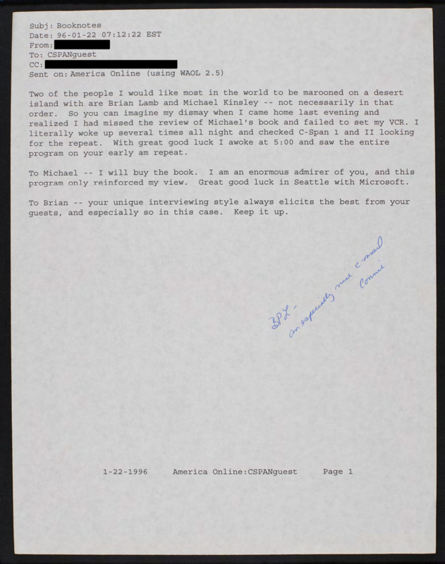 Letter to C-SPAN, 1996-01-22