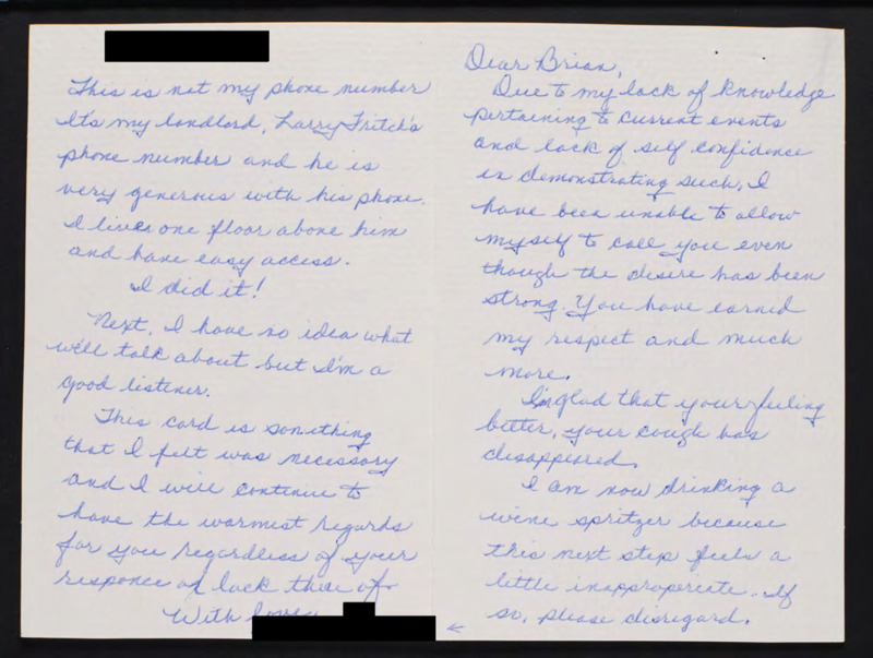 Expresses a romantic interest in Brian Lamb and offers her phone number.