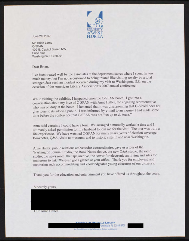 Letter to C-SPAN, 2007-06-29; 32514