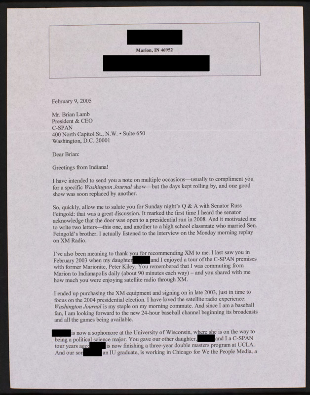 Letter to C-SPAN, 2005-02-09; 46952
