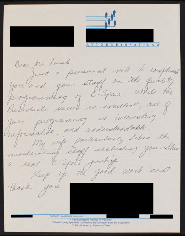 Letter to C-SPAN, n.d.; 55720