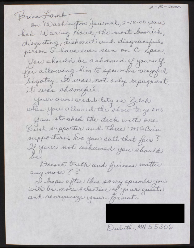 Letter to C-SPAN, 2000-02-18; 55806