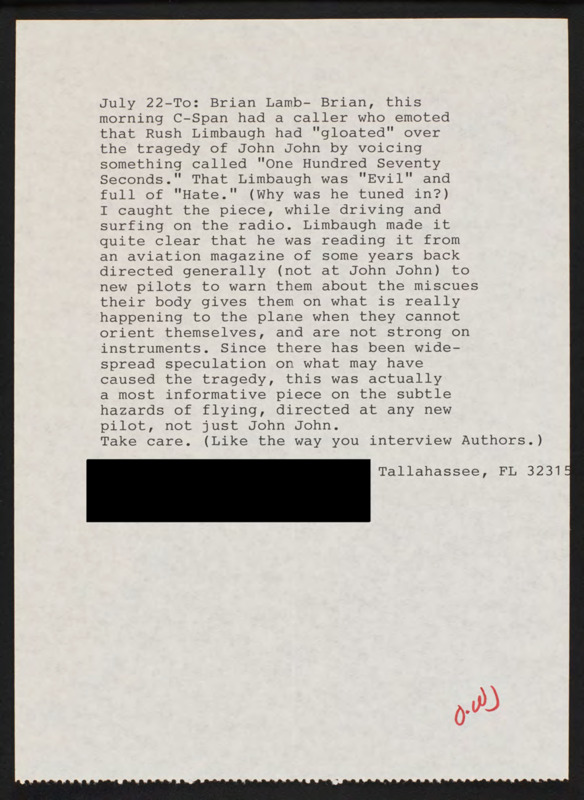 Letter to C-SPAN, n.d.; 32315