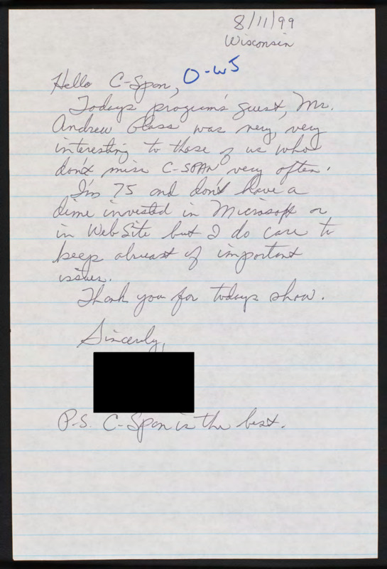 Letter to C-SPAN, 1999-08-11