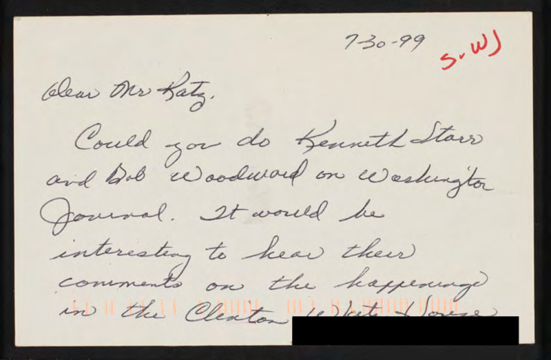 Asks if Kenneth Starr and Bob Woodward can be on Washington Journal program.