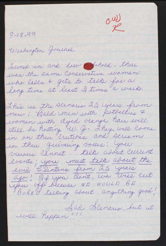 Letter to C-SPAN, 1999-08-18