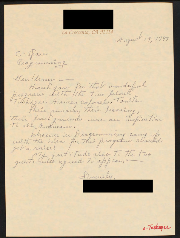 Thanks C-SPAN for airing a program with the Tuskegee Airmen.
