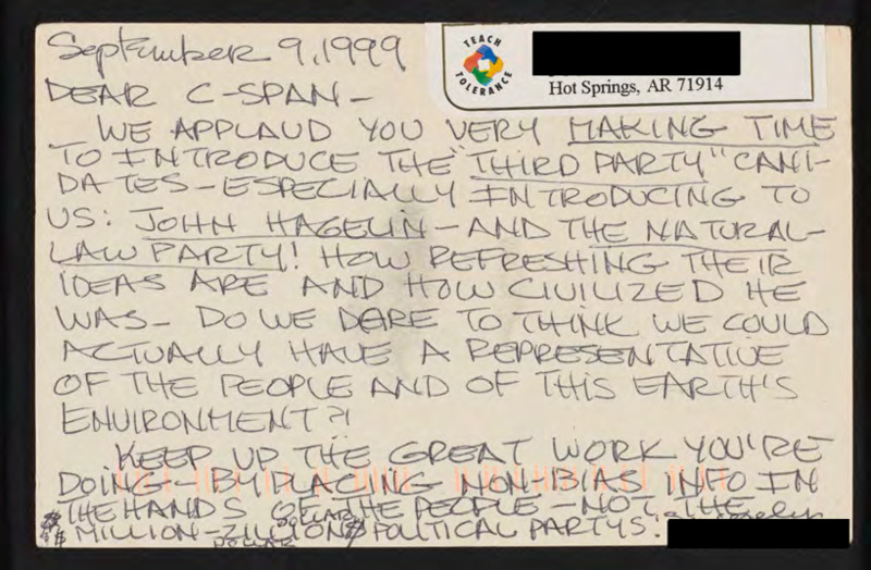Letter to C-SPAN, 1999-09-09; 71914