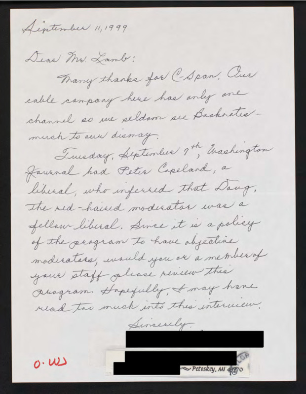 Letter to C-SPAN, 1999-09-11; 49770