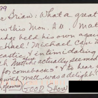 - Letter to C-SPAN, 1999-09-20; 76048