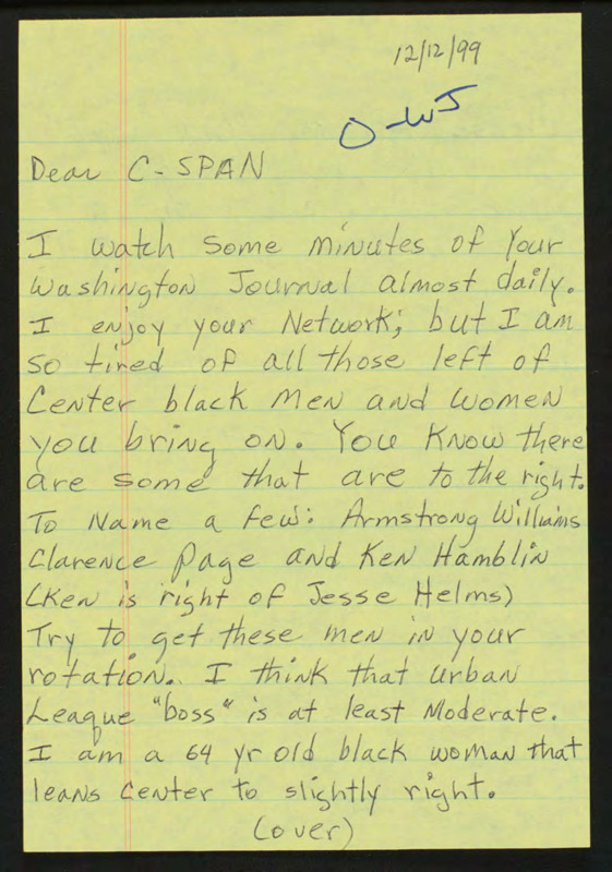 Letter to C-SPAN, 1999-12-12