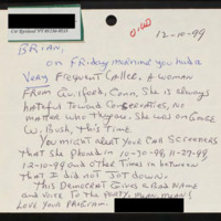 Asks to alert call screeners of opinion that one caller is phoning in too often and is hateful forwards conservatives.