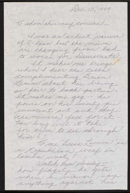 Letter to C-SPAN, 1999-12-13; 19609