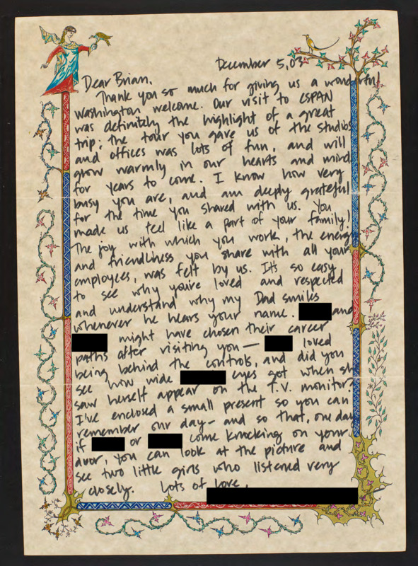 Thanks Brian Lamb for the visit to C-SPAN and offers praise.