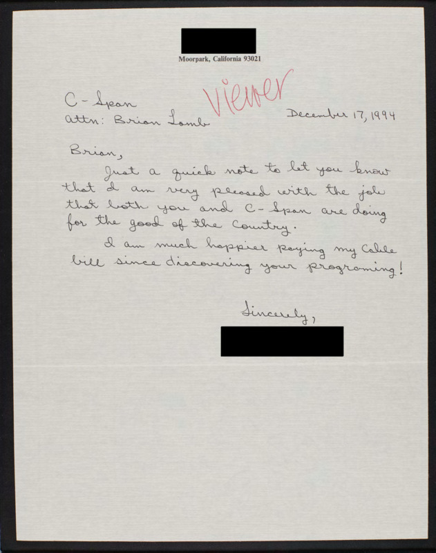 Letter to C-SPAN, 1994-12-17; 93021
