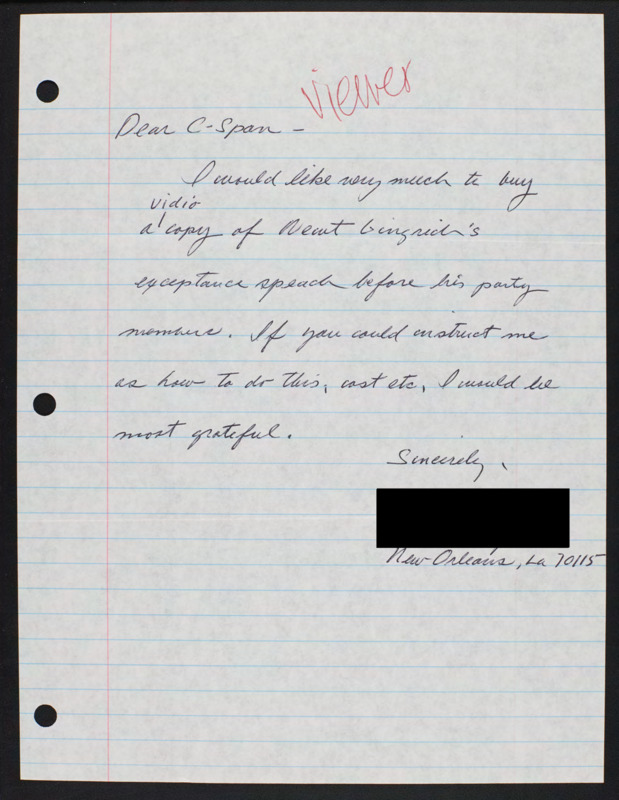 Letter to C-SPAN, n.d.; 70115