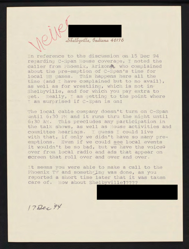 Letter to C-SPAN, 1994-12-17; 46176