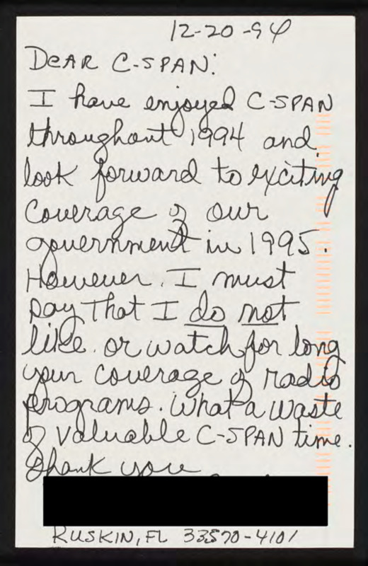 Letter to C-SPAN, 1994-12-20; 33570