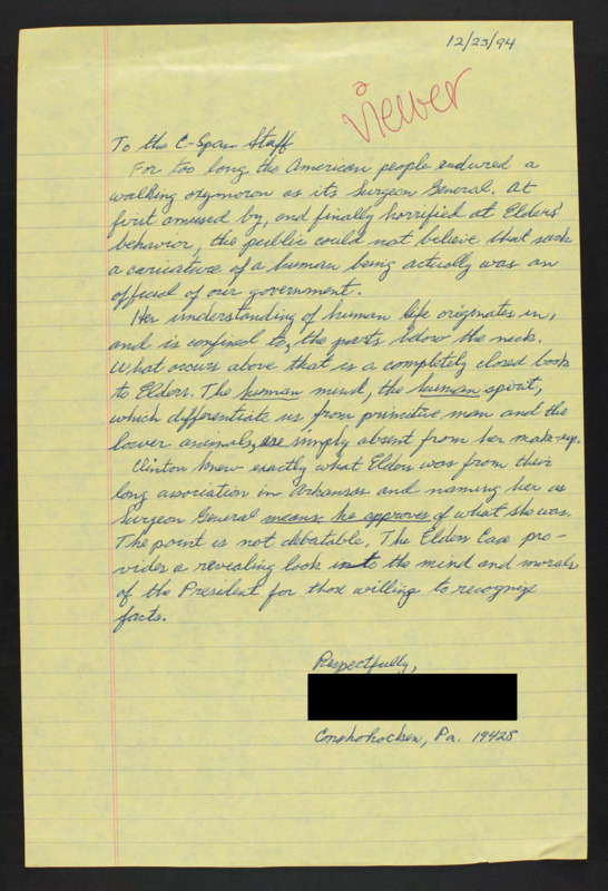Letter to C-SPAN, 1994-12-23; 19428