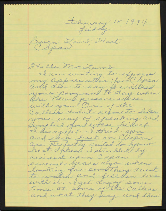 Letter to C-SPAN, 1994-02-18; 24474