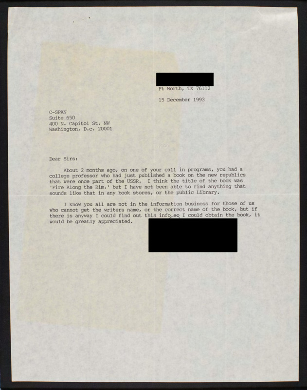 Letter to C-SPAN, 1993-12-15; 76112