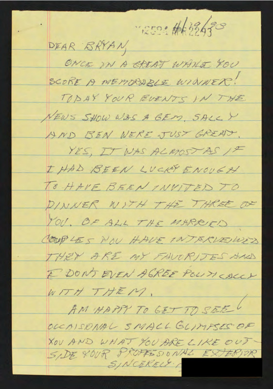 Expresses appreciation for interview with Sally Quinn and Ben Bradlee.