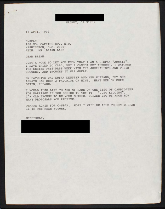 Letter to C-SPAN, 1993-04-17; 91789