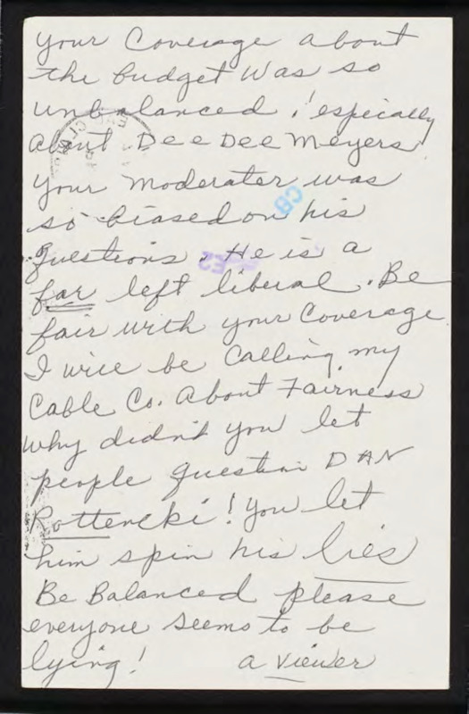 Expresses discontent with coverage of the budget for being too liberally Bias.